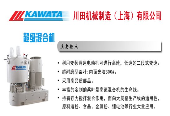 10月28-30日在上海跨國采購會展中心舉行的IPB 2015第十三屆中國國際粉體加工/散料輸送展覽會上,川田機械制造(上海)有限公司展示SMG-100-KS超級混合機、CA-05-KS風冷式冷水機、粉體送料機等產品。