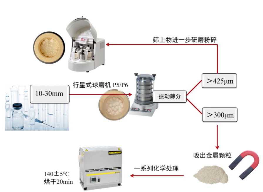 預處理:需要將完整的安瓿瓶砸碎成為1~3cm的碎塊