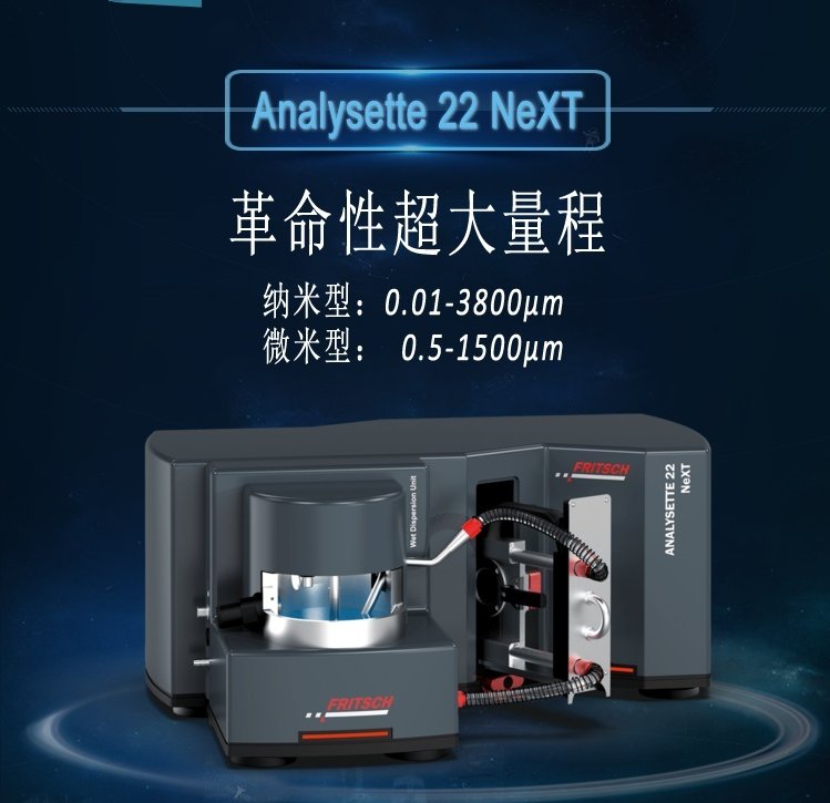 FRITSCH 納米激光粒度儀可以讓您根據自己的需求選擇測量范圍:擁有更大測量范圍的ANALYSETTE 22 NeXT 納米型,測量范圍拓展至0.01-3800μm,納米型激光粒度儀擁有極高的測量精度,附加的檢測器能夠更靈敏的分辨極小的顆粒。ANALYSETTE 22 NeXT 微米型測量范圍為0.5–1500μm,用于大多數常規樣品的測量需求。