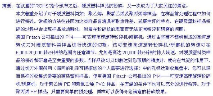 歐盟RoHS指令系列講座(二) ---硬質塑料類樣品粉碎的方法