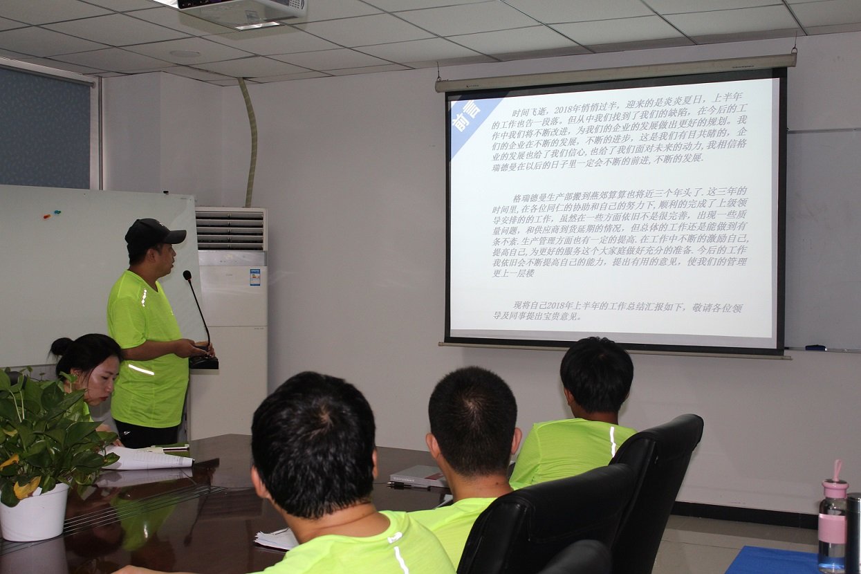 不知不覺(jué),2018年,已經(jīng)過(guò)一半,格瑞德曼公司也在熱情似火的7月迎來(lái)了一年一度的“中期會(huì)議”。7月21日,格瑞德曼公司全體工作人員相聚在“燕郊生產(chǎn)基地”,召開(kāi)了以“勇于創(chuàng)新 懷抱希望 樹(shù)立目標(biāo)”為主題的年中工作總結(jié)會(huì),總結(jié)2018年上半年所取得的成績(jī)與不足,共同部署并展望格瑞德曼公司下半年發(fā)展方向和前景。