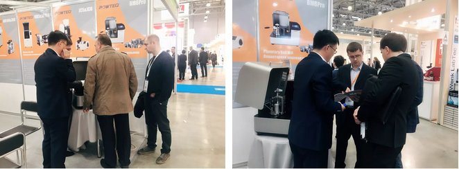 廣告牌上是格瑞德曼醒目的LOGO:POWTEQ和兩款設備:篩分儀SS2000和行星式球磨儀BM6Pro,這個顯眼的位置讓占據C位的格瑞德曼格外引人注目。