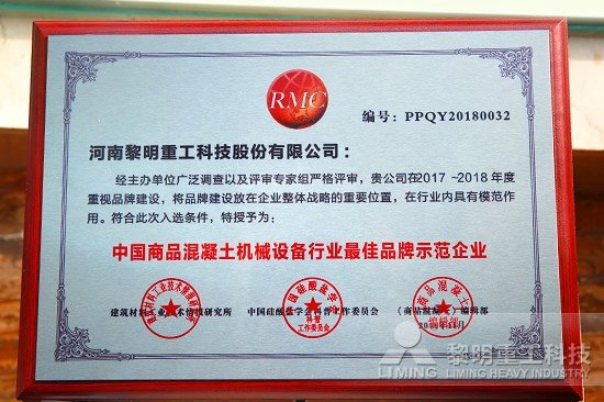 經(jīng)主辦單位廣泛調(diào)查以及評審專家組嚴(yán)格評審,黎明重工2017-2018年度重視品牌建設(shè)的突出表現(xiàn),在中國商品混凝土行業(yè)企業(yè)專家委員會第四屆第二次會議上,黎明重工獲得“中國商品混凝土機(jī)械設(shè)備行業(yè)最佳品牌示范單位”。