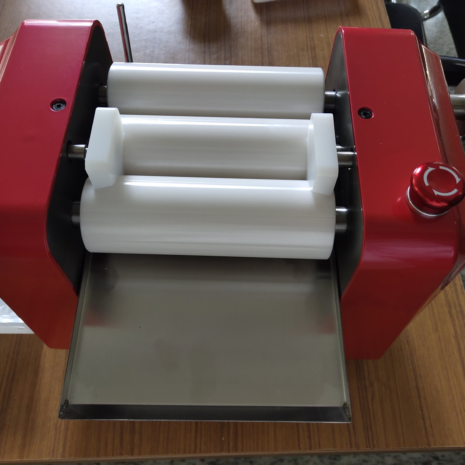2)雙手同時(shí)調(diào)整前輥的手輪,使前輥慢慢接觸到中輥,并使前輥表面上色均勻,然后鎖緊固定螺母,再調(diào)整料板角度,使其適當(dāng)壓在輥面上,漿液能均勻出料。檢查出料的均勻性和成品的粒度,繼續(xù)微調(diào)前后輥,直到成品的粒度達(dá)到預(yù)定的要求。刮刀應(yīng)在前后及時(shí)返回。