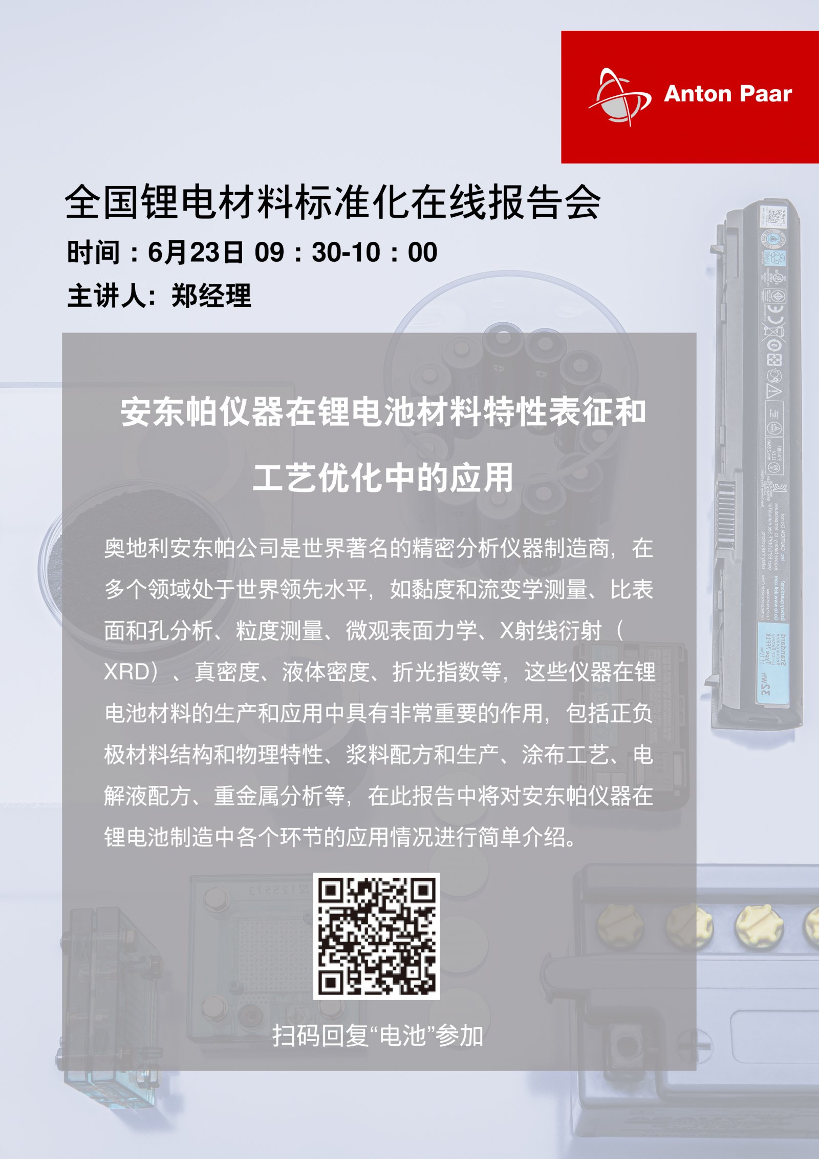 Webinar | 安東帕儀器在鋰電池材料特性表征和工藝優化中的應用