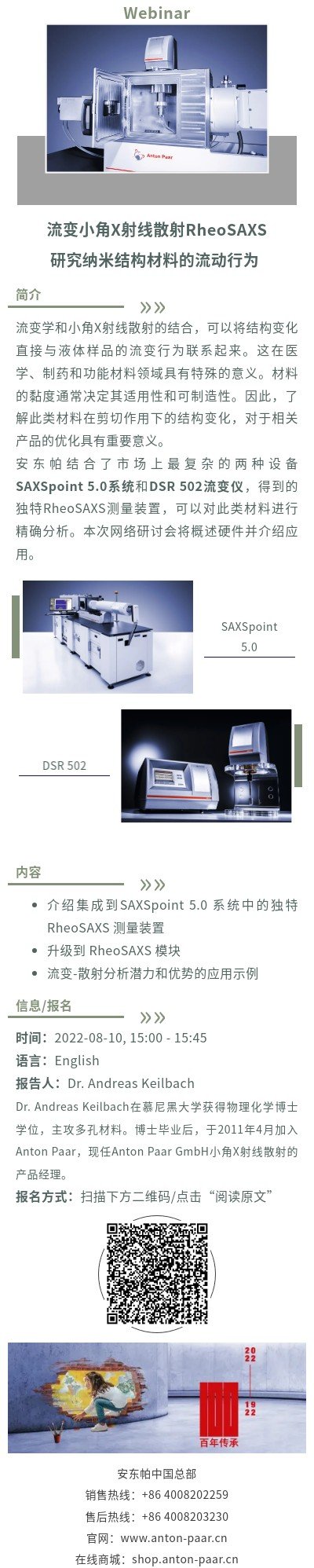 Webinar | ?流變小角X射線散射RheoSAXS 研究納米結構材料的流動行為