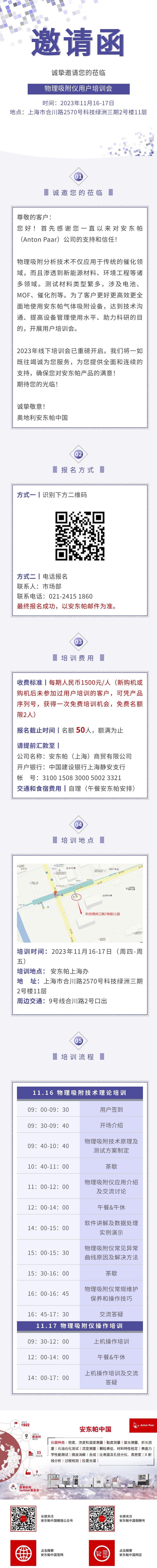邀請函 | 安東帕康塔氣體吸附儀用戶培訓會 - 上海