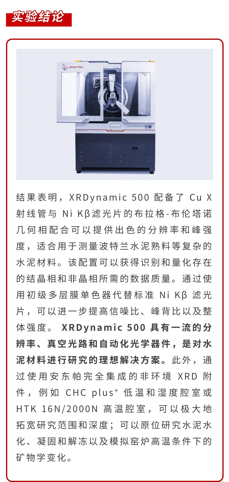 大約 2000 年前,羅馬帝國首次使用水泥以來,水泥已成為地球上最普遍的人造材料,隨后對其成分研究和用途成為焦點。 可以說,X 射線衍射 (XRD) 被認(rèn)為是當(dāng)今用于識別和量化水泥和混凝土混合物中礦物相的最重要的分析方法之一。由于材料中發(fā)現(xiàn)多晶礦物的成分和相互作用的復(fù)雜性,此種表征方法具有特別重要的意義。現(xiàn)代 XRD 儀器還可以通過將非環(huán)境附件納入儀器配置中,對水泥水化過程中的相變和反應(yīng)進(jìn)行原位研究。