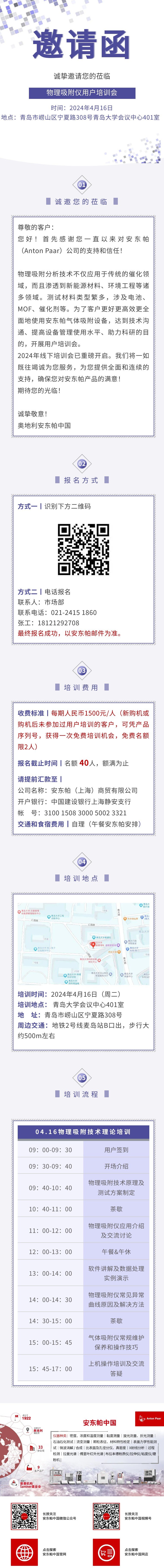 邀請函 | 安東帕康塔物理吸附儀用戶培訓會 _青島