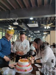 首先,東莞億富全體全體員工為老陳總六十大壽祝壽,集體祝愿老陳總福如潺潺東海,壽比巍巍南山。老陳總收下了祝福,對億富的發展做了展望,同時對東莞億富全體員工做出的貢獻做了肯定,為大家的未來做了鼓舞與激勵。