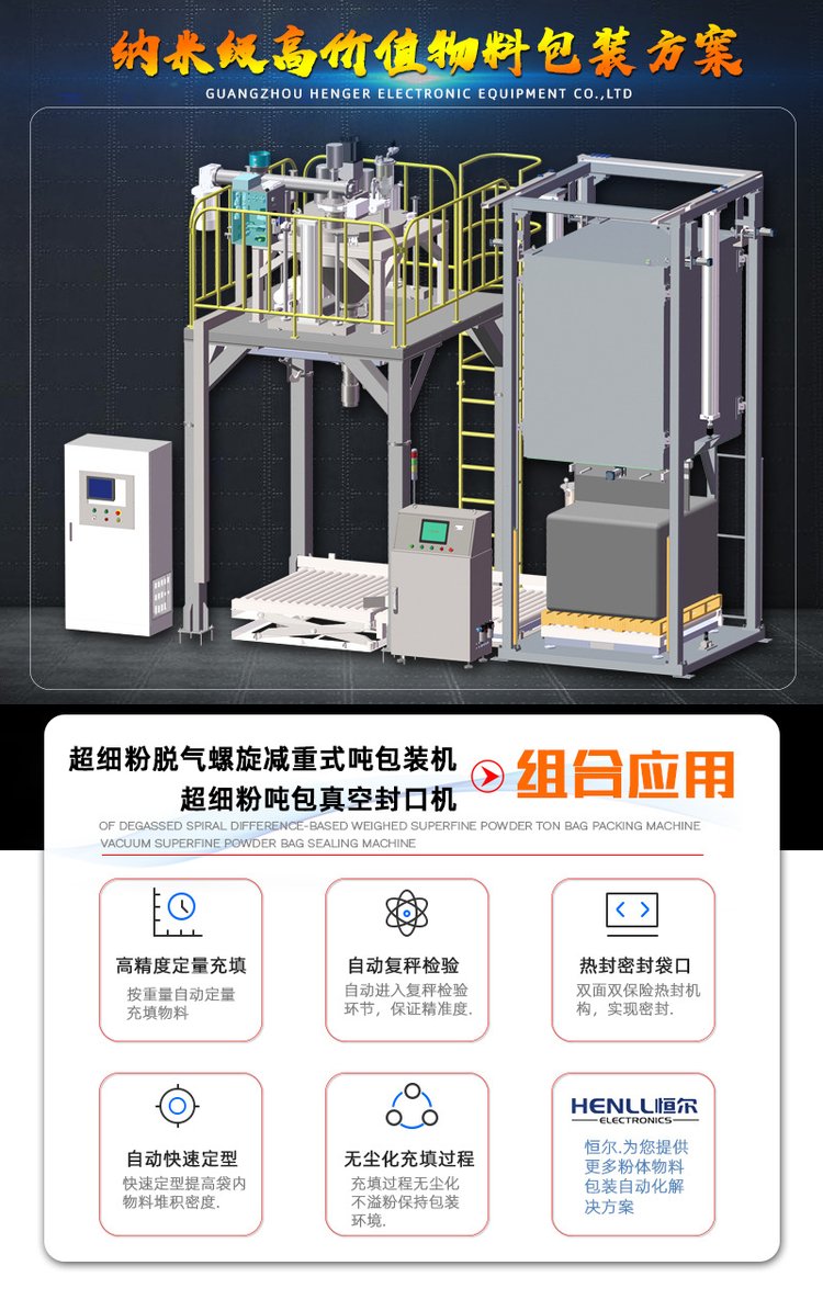 廣州恒爾電子設備有限公司是國家高新技術企業,連續三年被評為廣東省重合同守信用企業。公司集研發、生產、銷售、服務為一體,服務于新能源材料、阻燃劑、食品添加劑、化工、大米、種子、糧食、飼料等行業的計量及無塵自動化包裝,提供從物料氣力輸送、物料充填、自動包裝、自動化輸送、物料碼垛等整體工藝設計制作的交鑰匙工程。