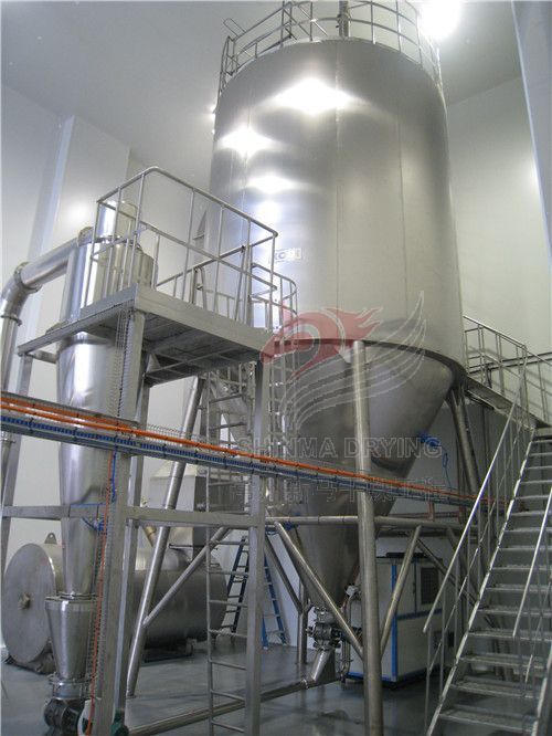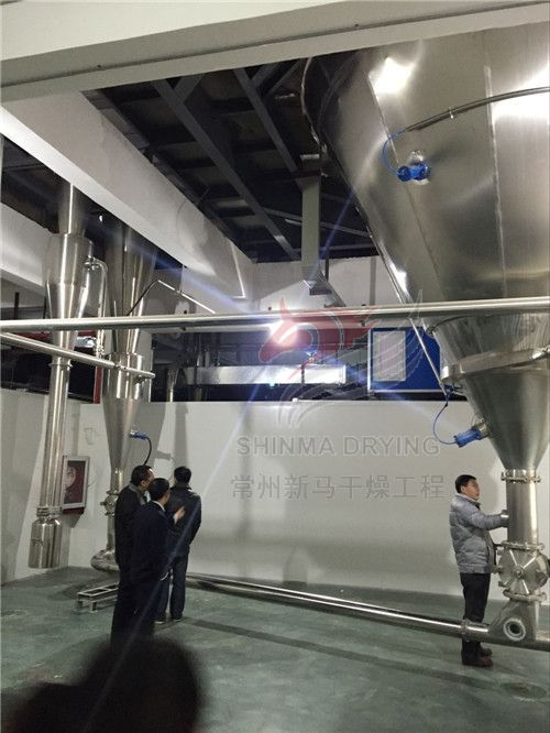 ZLPG-100型離心噴霧干燥機組是常州新馬干燥工程有限公司吸收國外技術(shù)開發(fā)的適用于熔點低、含糖高的中藥產(chǎn)品的干燥機械,并具有不粘壁、不易吸潮等特點。該裝置根據(jù)干燥產(chǎn)品的特點和性質(zhì)確定噴霧干燥的工藝條件,自動化程度高,操作方便,符合GMP要求。該裝置的成功開發(fā),解決了多年來許多熔點低、含糖高的中藥產(chǎn)品難以適用噴霧干燥的技術(shù)難點,也是對噴霧干燥在中藥制藥工業(yè)中的應(yīng)用技術(shù)研究的新發(fā)展。