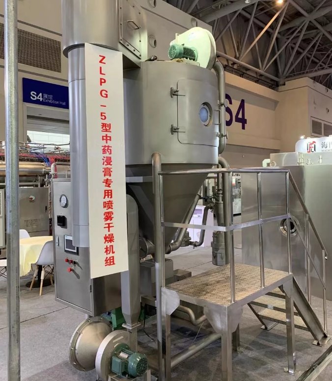 ZLPG-5型中藥浸膏專用噴霧干燥機組:中藥浸膏是由植物根、莖、葉提取而成。普通的離心噴霧干燥機已無法滿足此類產品的干燥要求,公司進過精密、反復的工藝計算和無數次的實驗,開發出了中藥浸膏專用噴霧干燥機組,并推廣到了一些知名藥廠使用。