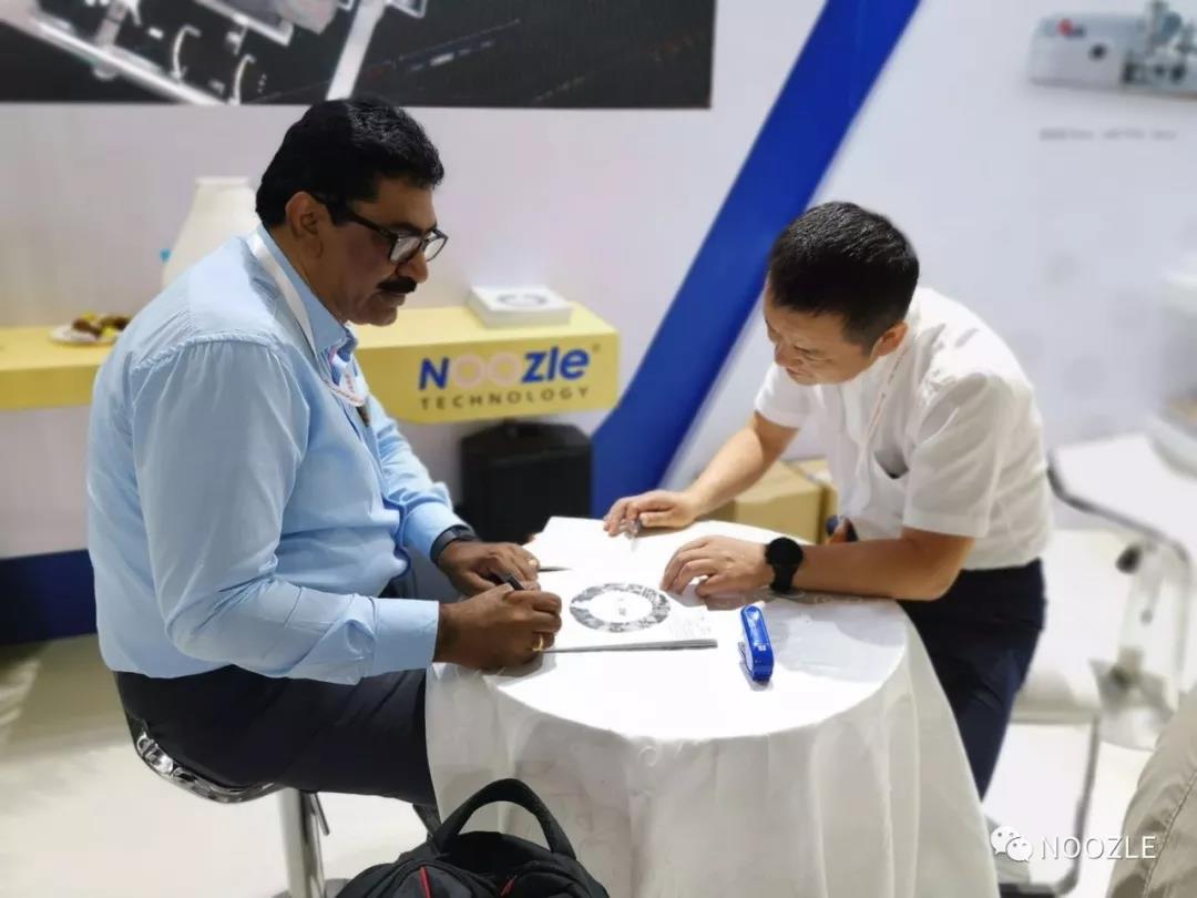 我司生產的超微粉氣流粉碎機、微射流均質機已出口印度,在載藥型乳液、脂質體、納米混懸液的分散等領域得到了國外客戶的一致好評,展會期間來自印度、伊朗、印尼等國家的潛在客戶絡繹不絕來到諾澤展臺,我司技術人員現場為客戶講解有關超微粉氣流粉碎機、微射流均質機的應用及客戶在藥物微粉化中遇到的技術問題!更有客戶現場確定采購意向。