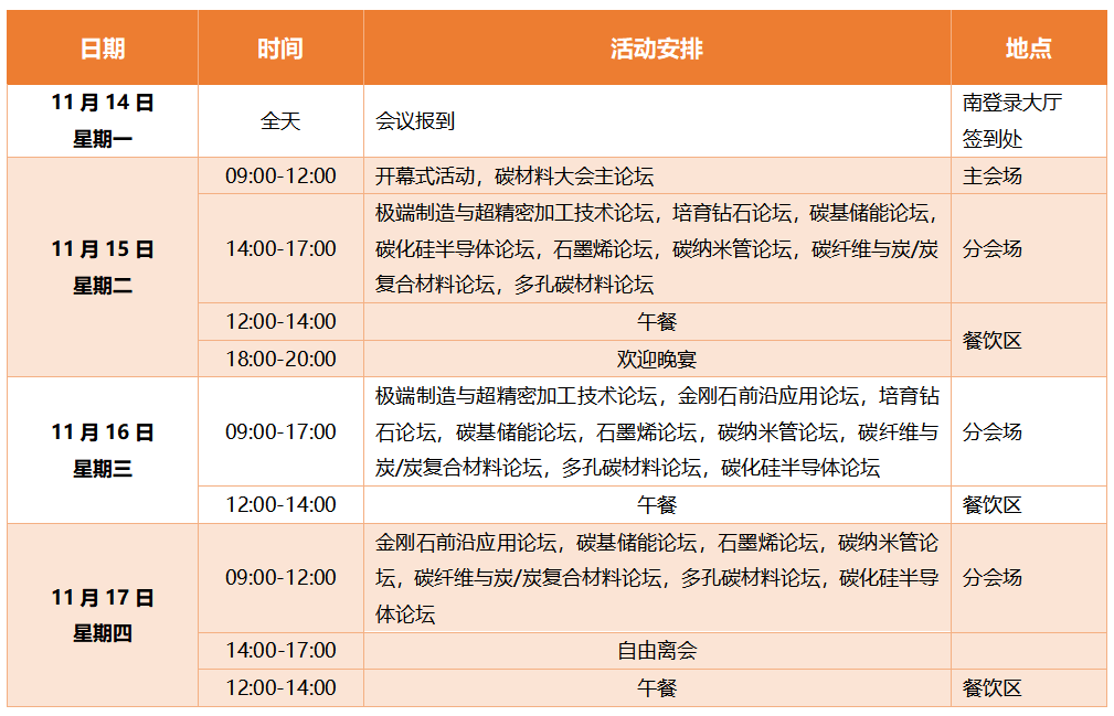 本次大會將設置1場 主論壇,9場分論壇,7場主題Workshop圓桌對話,20000㎡ 展覽,邀請600+ 院士專家、300+ 報告分享,分享行業研究成果和先進技術,體現產業發展趨勢。一站式了解碳材料的科學前沿、技術發展和工程應用。目前已吸引1500 余家企事業單位報名參會觀展。