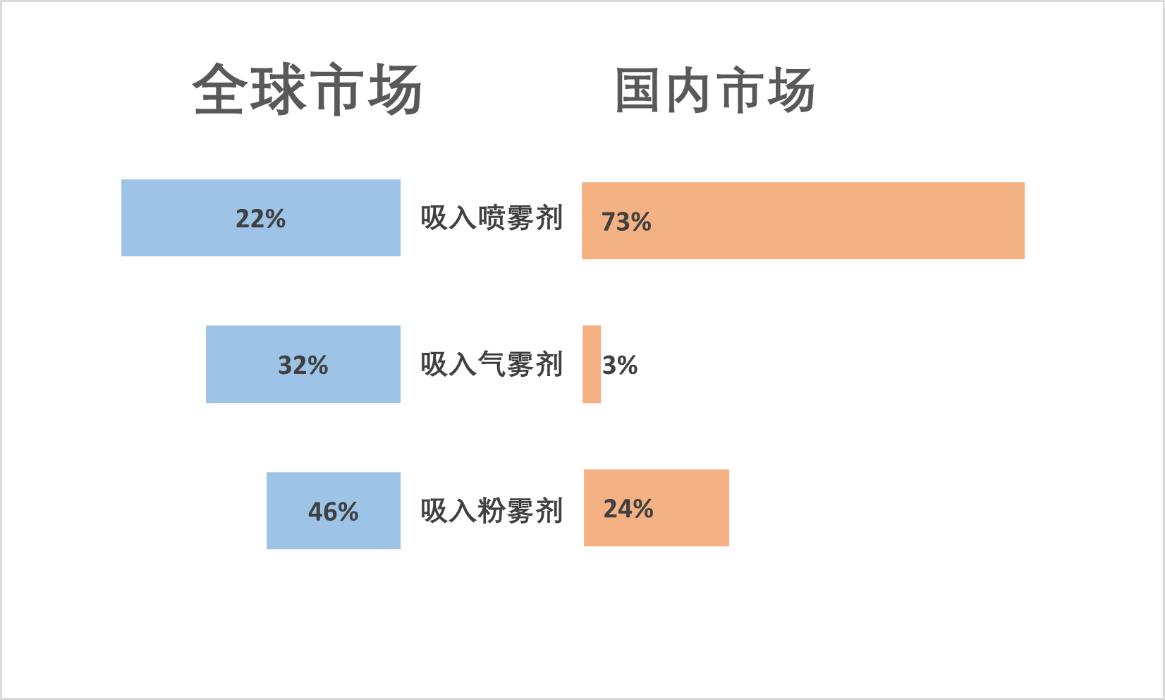 與普通口服制劑相比,吸入制劑的藥物可直接到達吸收或作用部位,吸收或作用快,可避免肝臟首過效應、減少用藥劑量; 與注射制劑相比,吸入制劑可提高患者依從性,同時可減輕或避免部分藥物不良反應。