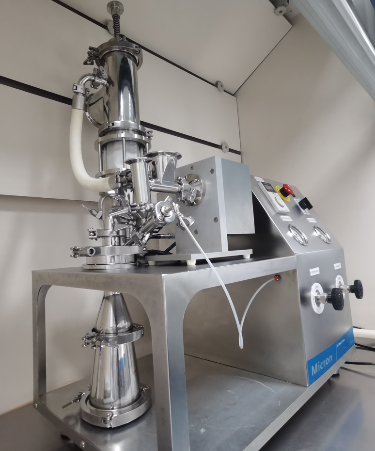 通常情況下,進行氣流粉碎前,待粉碎的物料本身不能有明顯的硬結塊,是由于氣流粉碎機的物料入口的直徑決定的,否則會發生物料返噴現象,造成收率降低且生產效率不佳。其次,水溶性的結晶性物料,在較低的粉碎壓力條件下就可以粉碎到10微米左右。最后,物料本身是否容易引起靜電吸附,導致粉碎腔內物料堆積或者收集管路堵塞,導致無法正常進行粉碎操作。