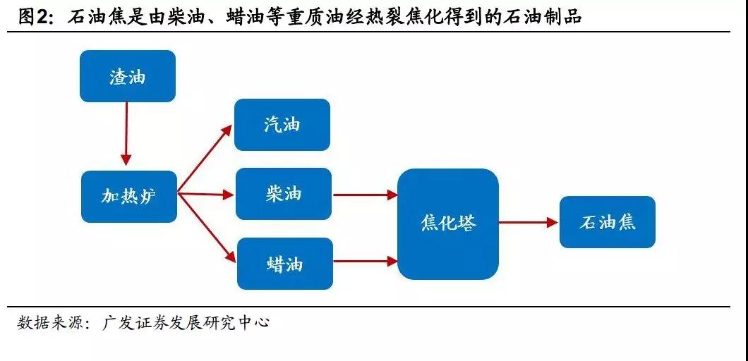 石油焦:石油焦(Petroleum coke)是原油經蒸餾將輕、重質油分離后,重質油再經熱裂過程得到的石油制品。石油焦色黑多孔,碳含量占80%以上,灰分含量一般在0.5%以下,在化工、冶金等行業中有廣泛的用途,是生產人造石墨制品及電解鋁用炭素制品的主要原料。石油焦按硫分的高低區分,可分為高硫焦(含硫1.5%以上)、中硫焦(含硫0.5%~1.5%)、和低硫焦(含硫0.5%以下)三種,石墨電極及其它人造石墨制品生產一般使用低硫焦生產。