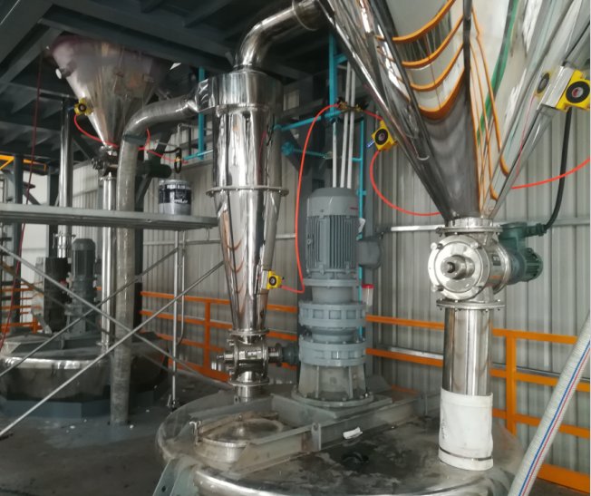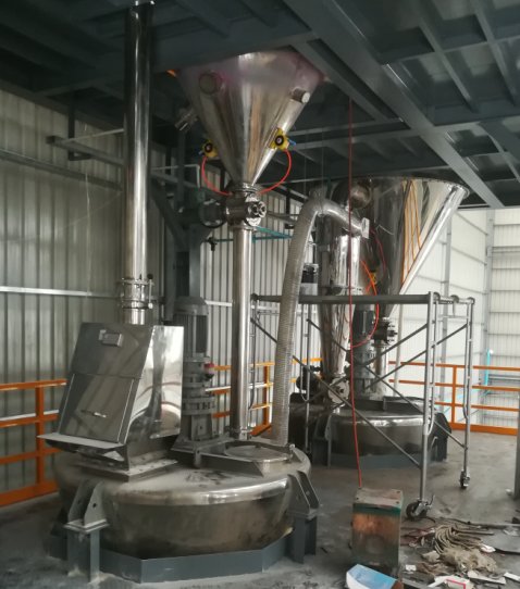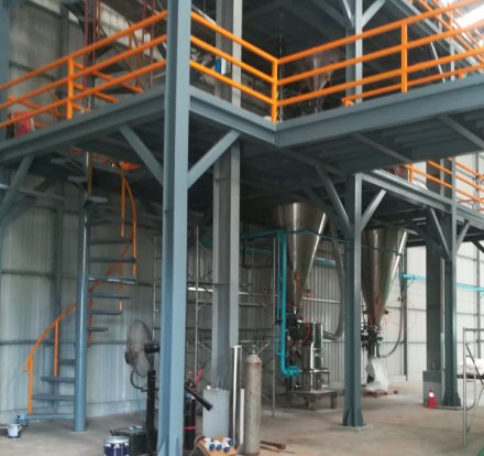 公司出口緬甸的WP農藥氣流粉碎混合系統安裝調試中