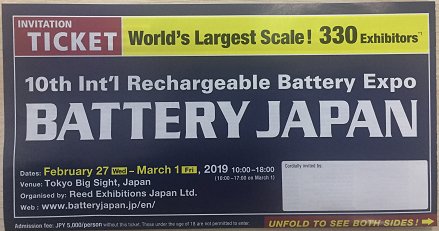 日本國際二次電池展覽會(BATTERY JAPAN)創辦于2010年,每年一屆,由日本勵展公司主辦,是世界最大的二次電池展覽會,此次展會聚集了包括二次電池、電容器、各種相關高端技術、材料、部件和用于生產研發二次電池和電容器的先進設備,吸引了一大批全球二次電池生產商、電池用戶、新一代汽車制造商、電子制造商相關參觀者,已經成為瞭望電池產業的重要窗口。