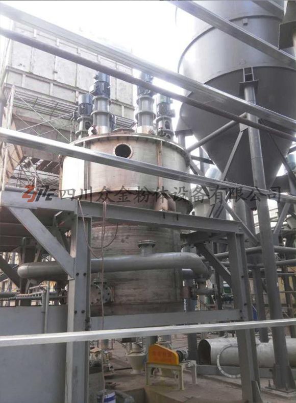蒸汽動能磨是利用過熱蒸汽經過同軸心噴嘴將顆粒加速、并進行碰撞粉碎,粉碎后的物料經過分級機分級,合格粉料進入后面的收集系統收集,不合格物料返回粉碎機繼續被粉碎。整個系統蒸汽保持在過熱狀態,生產在全干法下進行。