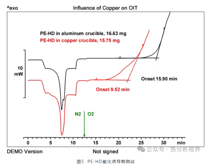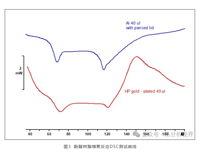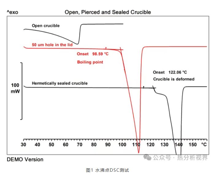 01 鋁坩堝 純鋁的熔點是660℃,實際使用的40ul鋁坩堝熔點都低于660℃,有國產(chǎn)坩堝和進口坩堝之分,材質(zhì)來源不同。進口坩堝質(zhì)量均一,純度高,可避免樣品與坩堝雜質(zhì)產(chǎn)生副反應(yīng),適用于常規(guī)DSC和低于640℃的TGA/DSC測試。對于比熱和重復性測試來說,進口坩堝的效果更好。梅特勒-托利多鋁坩堝高度低并且底部十分平坦(確保盡可能小的溫度梯度),可用于固體和液體樣品的測試。可以采用不扎孔蓋子、50um孔蓋子和大孔蓋子三種形式密封達到不同的測試效果:完全密封耐壓可達到0.2Mpa,可以用于抑制揮發(fā)性物質(zhì)的吸熱蒸發(fā)、汽化或升華(比如比熱容和蛋白變形測試);50ul孔蓋子采用激光打孔,能形成自生成氣氛測試低沸點液體的沸點,同時還可以分離重疊的熱效應(yīng);大孔蓋子或者無蓋可保持坩堝內(nèi)的氣氛和爐體氣氛一致(比如氧化誘導期測試)。下圖1是不同密封形式坩堝水汽化的測試,開口坩堝低溫也有揮發(fā)吸熱峰較寬,密閉坩堝在超過坩堝耐壓極限爆開,爆開溫度取決于樣品量,50um孔的蓋子能形成自生成氣氛才能準確地測得水的沸點是98.59℃。40ul鋁坩堝還有帶定位針和不帶定位針兩種,不帶定位針的適用于帶自動進樣器的儀器,帶定位針的只能手動加樣,可保證每次放置同樣的位置,結(jié)果重復性較好。 圖1 水沸點DSC測試 有時我們?yōu)榱说玫礁玫姆直媛驶蛘邽榱吮苊獗∧悠窚y試過程中發(fā)生卷曲導致測試曲線異常(見圖2),我們還可能用到20ul的輕質(zhì)鋁坩堝,坩堝與蓋之間的狹小空間可以形成自生成氣氛,在蓋上提前打孔也可以使得坩堝內(nèi)外氣氛聯(lián)通。 圖2 PE薄膜DSC測試 如果用40ul的鋁坩堝測試熱效應(yīng)微弱,我們還可以采用大體積的鋁坩堝(100ul和160ul)。不帶定位針的還有一種25ul的鋁坩堝,直徑4mm,是焓值重復性測試的最佳選擇。 02 高/中壓坩堝 對于DSC來說不建議做到分解溫度,因為分解產(chǎn)物一方面有可能會污染爐體和傳感器,另一方面坩堝密閉內(nèi)部壓力過大有可能爆開坩堝蓋子,導致測試結(jié)果不準確。對于某些特殊應(yīng)用比如反應(yīng)安全必須做到分解溫度,我們可以選擇高壓坩堝。高壓坩堝有重復使用(不銹鋼30ul)和一次性(不銹鋼鍍金,25ul和40ul)的,如果追求測試結(jié)果準確性和重復性,建議使用一次性高壓坩堝,相對成本較高,可避免重復使用高壓坩堝多次使用后有可能的清洗殘留和密封性減弱問題。對于阻止汽化且壓力超過0.2Mpa的測試我們采用中壓(耐壓2Mpa)或者高壓坩堝(耐壓15Mpa)。下圖3是酚醛樹脂縮聚反應(yīng)測試,由于DSC測試的是綜合熱效應(yīng),縮聚反應(yīng)放熱而水汽化吸熱,采用40ul鋁坩堝蓋子扎孔測試根本測不到縮聚反應(yīng)放熱峰,而采用高壓坩堝測試縮聚反應(yīng)放熱峰就很明顯。 圖3 酚醛樹脂縮聚反應(yīng)DSC測試曲線 高/中壓坩 03 氧化鋁坩堝 氧化鋁坩堝就是我們通常說的陶瓷坩堝,一般用于TGA測試,尤其是測試熱重信號而不是熱流信號。可重復使用,物理清潔后(如果需要,在清水中(或10%的鹽酸溶液中)清洗,因為很多鹽類能在水中溶解。),儲存起來備用。對于有些小分子物質(zhì)的測試,小分子有可能滲透陶瓷坩堝,導致測試結(jié)果差,而采用鉑金坩堝的測試結(jié)果準確且重復性好(見圖4潤滑油Noack 揮發(fā)性測試)。對于大多數(shù)同步測試,常用陶瓷坩堝,但是如果想得到更好的熱流信號,建議采用鉑金坩堝或者鋁坩堝(低于640℃的實驗),也可以采用70ul的鉑金坩堝內(nèi)嵌50ul陶瓷坩堝的方式獲得更好的熱流信號,以保護鉑金坩堝。如果實驗溫度高于1000℃,同質(zhì)的材料可能會發(fā)生燒結(jié),建議在坩堝和支架之間墊一個藍寶石墊片。為了避免有些樣品在稱量后和測試前發(fā)生變化(比如氧化或者吸潮等),可以采用黃蜂針扎孔(鋁坩堝)或者特殊鋁蓋(陶瓷坩堝)。 圖4 潤滑油Noack 揮發(fā)性測試 04 鉑金坩堝 鉑金坩堝屬于貴金屬,價格較貴,主要用于溫度超過640?C的TGA或DSC測試。測試得到的SDTA和DSC曲線通常比使用氧化鋁坩堝得到的曲線好。但要注意熔融態(tài)金屬很容易與鉑生成合金,這可能會在坩堝底部生成一個洞。煤煙(即炭黑)是在無氧氣氛中產(chǎn)生的一種鉑中毒。 05 其它坩堝 銅坩堝不帶蓋,專門用于銅環(huán)境中的氧化穩(wěn)定性測試(OIT),銅起催化作用,比如測試電纜材料的氧化誘導期。通常將使用這種坩堝測試得到的氧化誘導時間與使用惰性鋁坩堝測試得到的結(jié)果進行比較(見圖5)。金坩堝耐化學腐蝕,除鋁坩堝外唯一能夠冷壓密封的坩堝(耐壓0.3Mpa),若不是價格昂貴將會得到更多的使用。藍寶石坩堝(PCA)是一種多晶氧化鋁,材料結(jié)構(gòu)緊實、耐化學腐蝕、惰性。PCA坩堝能夠適用于所有的材料,包括熔融金屬鐵或鎳。 圖5 PE-HD氧化誘導期測試 綜合上面的介紹我們了解到,坩堝種類繁多,選擇須三思。選擇合適的坩堝才能夠得到理想的測試結(jié)果,才能夠讓我們輕松解析測試曲線。