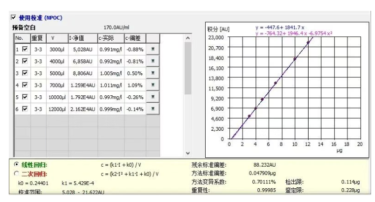 德國耶拿TOC解決方案 難點突破1:直接進樣,無需稀釋 電子級試劑往往由于其純度高但待測TOC含量低,而使得允許的稀釋倍數(shù)受限。有些高純試劑稀釋后TOC將與空白無差別,無法準(zhǔn)確定量。 以雙氧水為例,其在分解過程中會產(chǎn)生大量氧氣,同時高溫下水分會迅速氣化,測定時的氣流波動會嚴(yán)重干擾測定結(jié)果。傳統(tǒng)分析采用稀釋進樣的方法,而電子級的雙氧水含量特別低,稀釋后TOC含量與空白相差不大,會帶來很大的稀釋誤差,同時空氣中的CO2也會影響分析結(jié)果。 德國耶拿獨家的VITA技術(shù)用來補償不可避免的分析氣體流量的波動引起的信號變化,拓寬低濃度的檢測范圍,使得TOC系統(tǒng)更精確,靈敏,穩(wěn)定。對高達(dá)70%濃度H2O2溶液無需進行稀釋,可直接進樣分析。同時配備高聚焦NDIR檢測器,對CO2具有更高靈敏度,可獲得更為可靠的結(jié)果,且一次進樣可以同時分析TOC和TN參數(shù),可以實現(xiàn)高效高通量測定。 案例一:30%/70% 雙氧水TOC/TN測定 對電子級分別為30%和70%雙氧水溶液進行直接測定,70%雙氧水RSD達(dá)到0.5%,說明VITA流量技術(shù)很好地消除了燃燒過程中氣流波動帶來的影響,測試樣品后對2.5ppm的標(biāo)液進行回測,回收率為103%,說明儀器的氧化性能佳;且儀器能兼顧TN的同時測試,為品控提供有力的數(shù)據(jù)支持。 難點突破2:超強的酸堿耐受性 對于酸堿性的樣品,如果直接進入定量閥,長時間會腐蝕定量閥的密封圈和內(nèi)部器械,會加劇定量閥的損壞速度,導(dǎo)致進樣體積不準(zhǔn)確等問題。德國耶拿在硬件上進行技術(shù)革新,在保證進樣體積準(zhǔn)確性的前提下,用超純水代替樣品進入定量閥,避免樣品對定量閥的損耗,可以長時間分析酸堿性,甚至是有一定顆粒的高鹽樣品,耗材少,維護成本低。 案例二:電子級硫酸中TOC測定 考慮到高純硫酸在管道有很明顯的放熱反應(yīng),樣品稀釋測定,同時進行加標(biāo)回收實驗。從實驗數(shù)據(jù)可以看出,樣品加標(biāo)回收率為96%,TOC標(biāo)樣的回收率為97%,說明儀器對高純硫酸的基體耐受性好,能準(zhǔn)確測定電子級硫酸中低濃度TOC的含量。 案例三:電子級氨水中TOC測定 由于氨水是堿性溶液且電子級的氨水TOC濃度本身就比較低,容易吸收空氣中的CO2 ,造成結(jié)果的不準(zhǔn)確性,測試前對樣品進行稀釋中和,同時扣除酸空白。從實驗數(shù)據(jù)可以看出,樣品RSD均小于1%,0.1ppm的樣品加標(biāo)回收率為99%,0.1ppm TOC標(biāo)樣的回收率為102%,說明儀器對低TOC的電子級氨水測定準(zhǔn)確性高。 難點突破3:儀器自動繪制標(biāo)準(zhǔn)曲線+ 長達(dá)一年校準(zhǔn)周期 對于較低TOC濃度樣品的測定,如何繪制低濃度的標(biāo)準(zhǔn)曲線顯得非常重要。由于配制標(biāo)液需要稀釋液,但實驗室很難找到TOC為零的稀釋液,在配制溶液的過程也容易引入空氣中的CO2 ,得不到線性較好的曲線。德國耶拿multi N/C 總有機碳分析儀提供吸取不同體積繪制曲線的功能,無需人為配制曲線,線性輕松達(dá)到0.999以上,且校準(zhǔn)周期長達(dá)一年,減少每次做樣前曲線繪制的人力和時間,讓您有更多的時間做重要的事情。 綜上,德國耶拿multi N/C 總有機碳分析儀能輕松應(yīng)對高純濕電子化學(xué)品超低TOC的測定需求,幫助企業(yè)實時監(jiān)控生產(chǎn)過程中的化學(xué)品純度,確保生產(chǎn)效率和產(chǎn)品質(zhì)量,提高產(chǎn)品的市場競爭力。