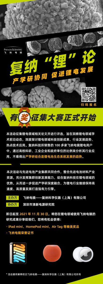2021 年 11 月 30 日前,掃描下方二維碼,填寫(xiě)報(bào)名表完成注冊(cè)登記,并將您的投稿素材作為郵件附件,以“復(fù)納鋰論”+“姓名”+“單位”為郵件標(biāo)題,附上原文 PDF 及文章中原圖壓縮包,發(fā)送至:info@phenom-china.com