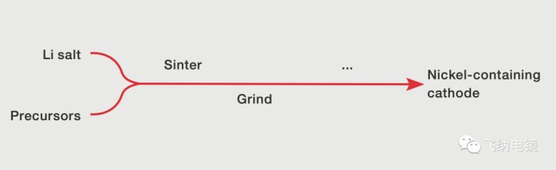 圖 1 顯示了 NCM 正極粉末的生產(chǎn)過程。NCM 正極材料是將鋰鹽與前驅(qū)體混合后燒結(jié)(通常通過水熱法和共沉淀法制備),燒結(jié)后,再將團(tuán)聚的顆粒研磨粉碎成需要的粒徑。
