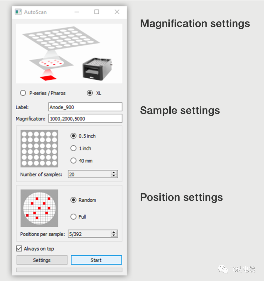 飛納電鏡 Phenom XL G2 提供了自動(dòng)成像工作流,AutoScan 軟件可以在加載樣品后自動(dòng)獲取數(shù)據(jù)。該設(shè)備一次最多可容納 36 個(gè)樣品,每個(gè)樣品能夠在不同的位置以不同的放大倍數(shù)成像。整個(gè)過程可以輕松實(shí)現(xiàn)定制化工作流程。