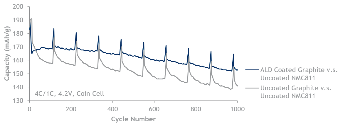 ALD 包覆的石墨負極在循環后擁有更好的容量保持率