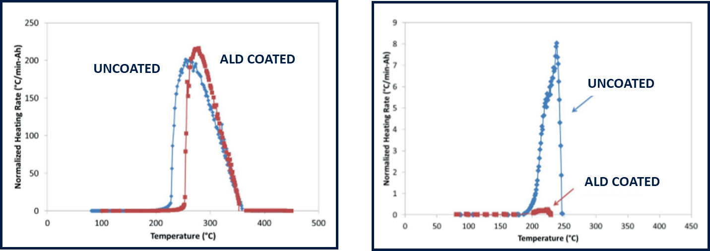 ALD 包覆后的正負極材料失控溫度都有明顯升?進?步提升了安全性