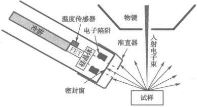 圖 9:EDS 探測器構造,可以看到晶體后方連著傳感器和冷阱,以保證低溫。