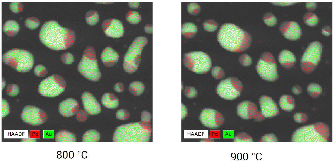圖 10:高溫下 Au/Pd 納米顆粒的 EDS 面掃結果