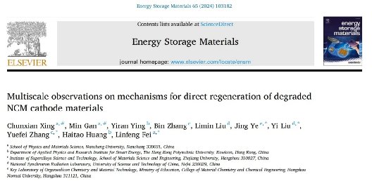 獲獎?wù)撐模篗ultiscale observations on mechanisms for direct regeneration of degraded NCM cathode materials (對退化NCM 正極材料直接再生機制的多尺度觀察)