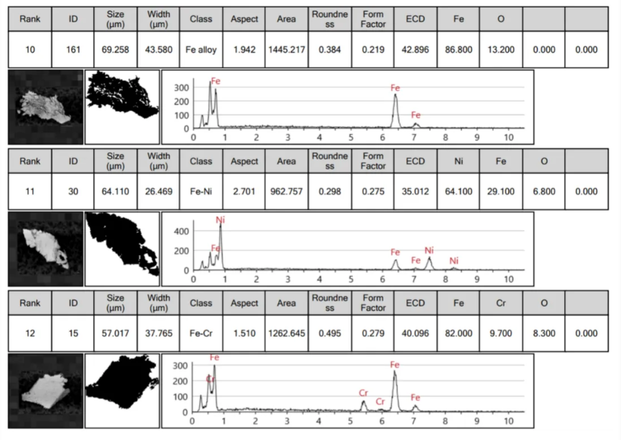 并非所有金屬顆粒都具有相同的危害性,例如,在對大量失效電池進行拆解分析后發現,相對于不銹鋼,銅的危害性更高。主要是因為銅離子更容易在負極析出,析出后的生長方式呈現枝晶狀,很容易刺穿隔膜。并且,銅的電導率比鐵高了一個數量級,一旦銅枝晶刺穿隔膜,極易導致電池內部短路,進一步導致電池過熱甚至起火。為了有效評估金屬顆粒的危害性,需要知道顆粒的詳細成分,而光學顯微鏡只能區分金屬和非金屬,但具體是哪類金屬則無從得知。這就需要借助電子顯微鏡。