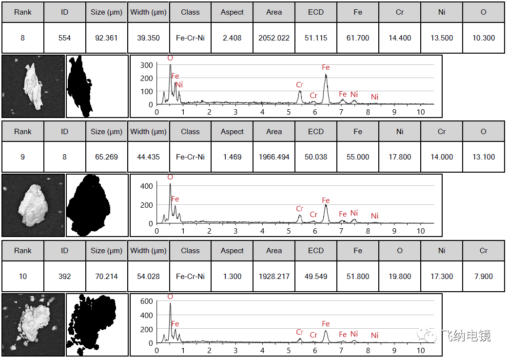 以下是系統自動篩選出的雜質顆粒的部分結果,可以直觀地看出雜質的形態,成分,種類等信息。