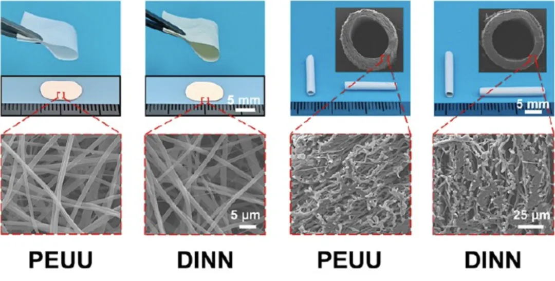 (1)PEUU 與 DINN 纖維片墊和管的微觀形貌