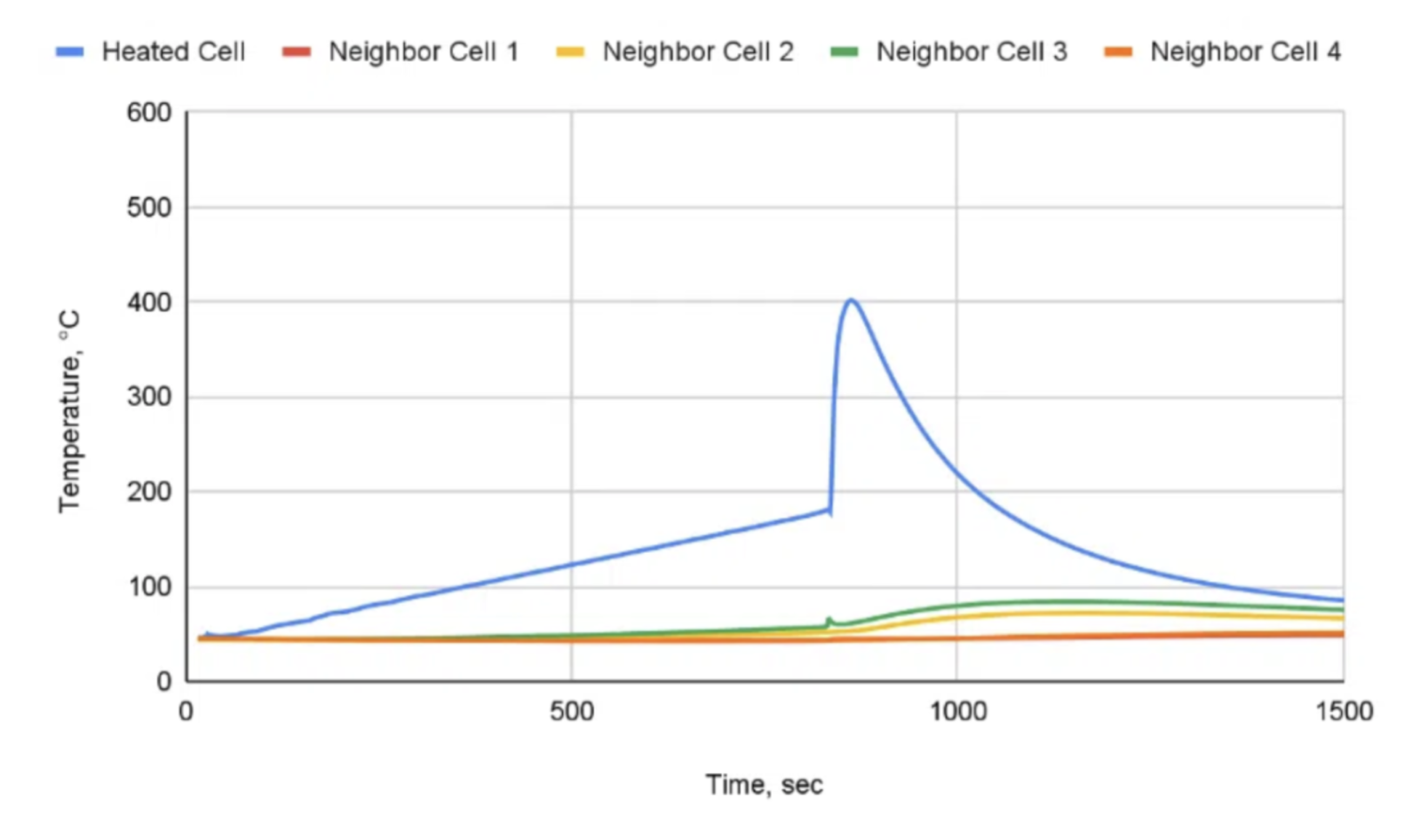 電池失控遵循與 ABS 模塊類似的模式,這是高能電池化學(xué)反應(yīng)所預(yù)期的。
