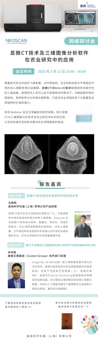 本場 Webinar 旨在分享最新的研究成果,探討顯微 CT 與三維圖像分析技術在農業研究中的實際應用,以及如何通過這些技術解決農業領域面臨的挑戰。
