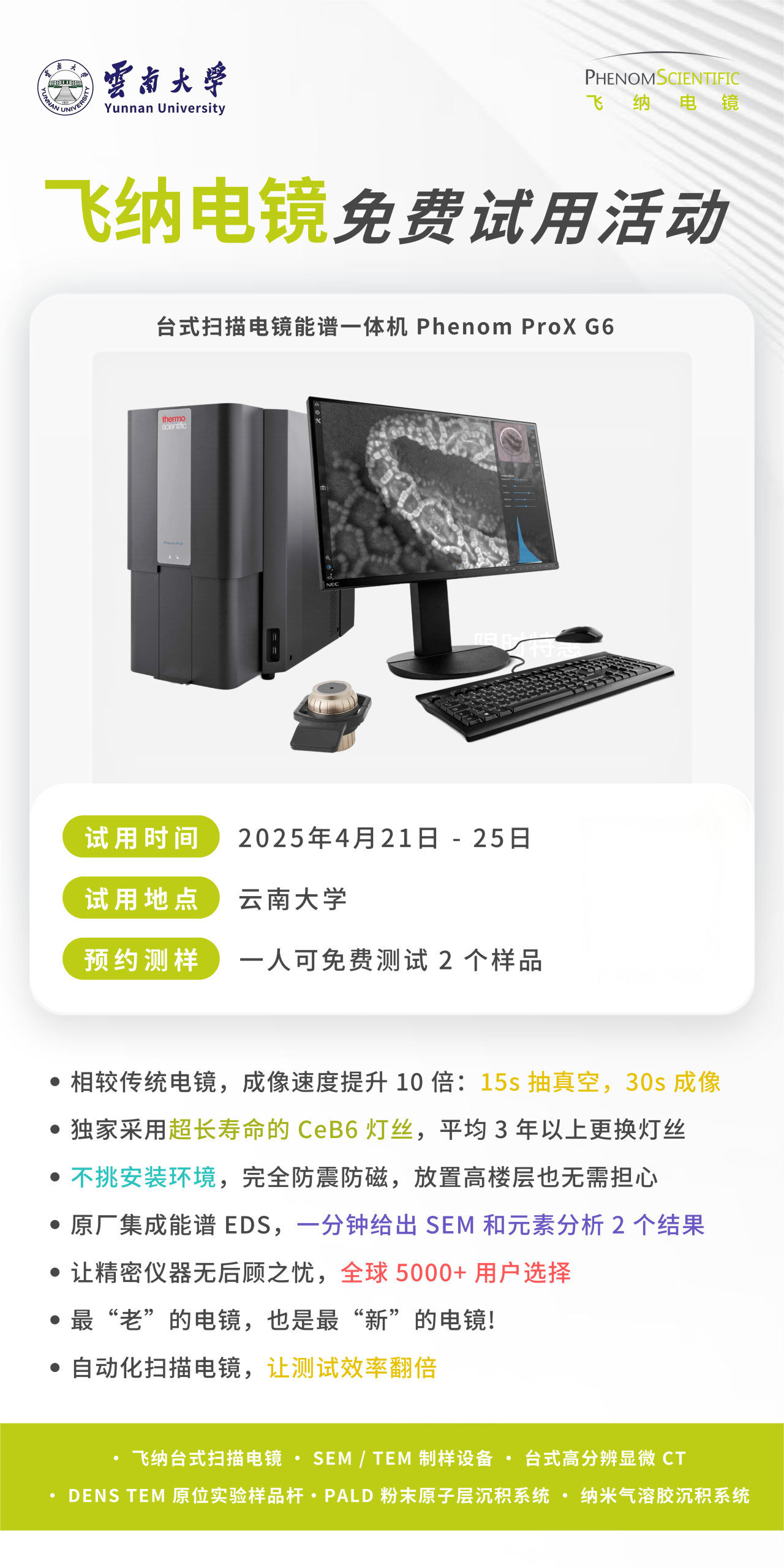 如今,這場備受矚目的活動來到了我們美麗的云南大學,將開展為期一周(4月21-25日)的掃描電鏡免費測樣活動。