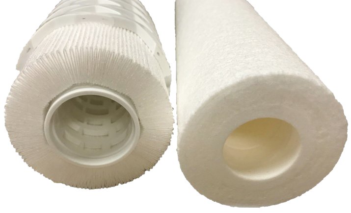 褶式濾芯(左)與傳統(tǒng)的熔噴濾芯(右)相比較