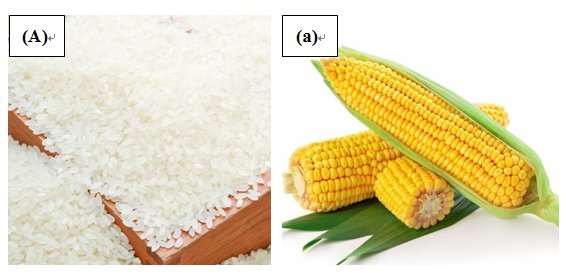 圖1.大米(A)與玉米(a)的宏觀圖