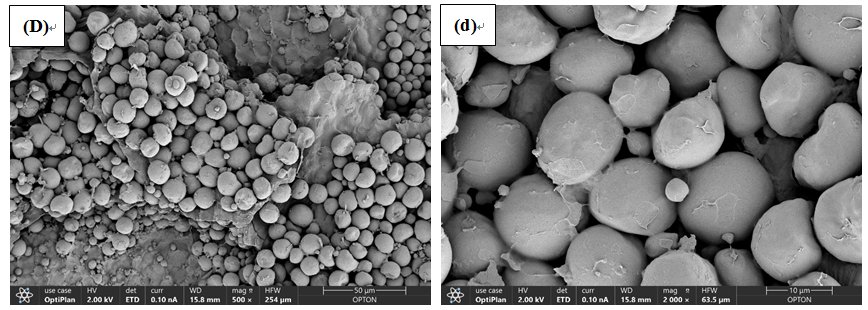 綜上所知,掃描電鏡對(duì)生活中常見可食用淀粉的微觀形貌進(jìn)行了觀察,淀粉粒形態(tài)各異,有大小淀粉兩種,大小淀粉的生長(zhǎng)有一定的時(shí)序性。后續(xù)會(huì)對(duì)更多的可食用淀粉進(jìn)行觀察,敬請(qǐng)期待!