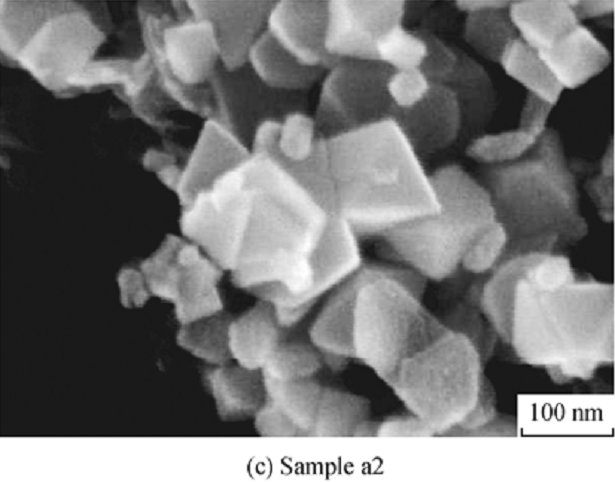 華南理工大學曾老師課題組采用氧化共沉淀法,在弱磁場的輔助作用下,以 FeCl2,NaOH 為原料、H2O2 為氧化劑,合成得到了正八面體和六方體型 Fe3O4 納米粒子。并通過美國MAS生產的APS-100超聲法粒度儀對合成的Fe3O4 納米粒子的粒度進行了測定,通過SEM圖1和APS-100測量的粒度分布數據圖2,說明了最終的粒子是二次粒子,是由 Fe3O4 初級粒子經歷二次成核和二次生長得到的。