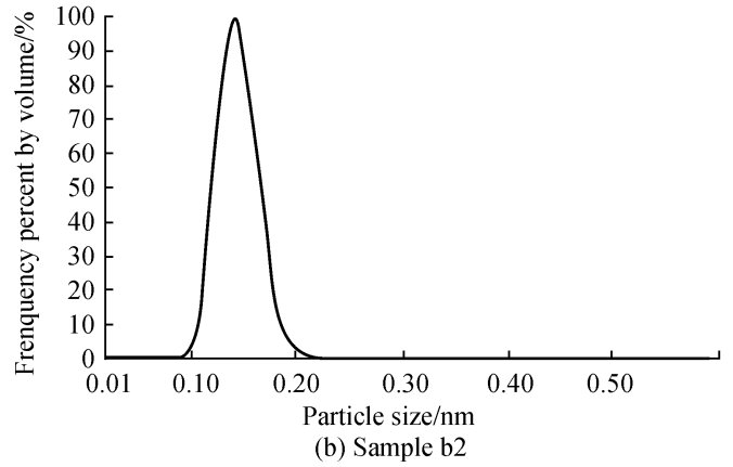 另外對比圖 2 實測的顆粒粒度分布和表1的Scherrer 公式計算的晶粒度大小,也說明最終的粒子是二次粒子,是由 Fe3O4 初級粒子經歷二次成核和二次生長得到的。表1:樣品a2和b2 產物的晶粒的理論計算大小