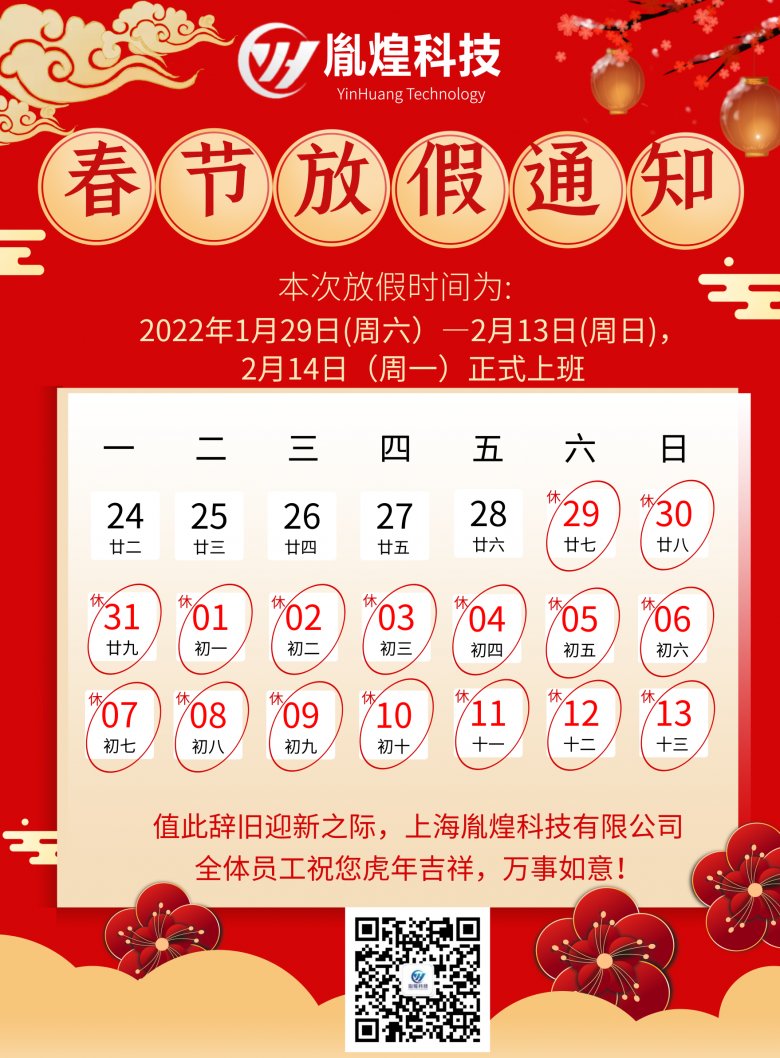 2022年春節(jié)將至,以下為本公司此次春節(jié)假日安排: