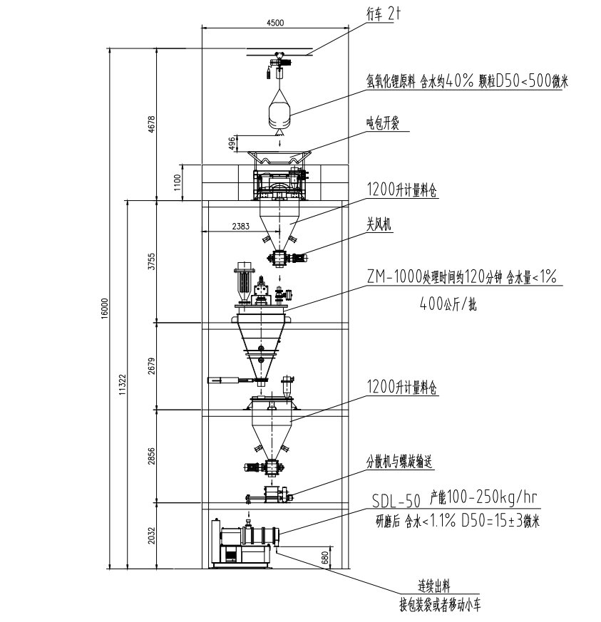 (1)目前高鎳三元正極材料產業化過程中的技術難點之一,是原材料氫氧化鋰的預處理問題。采用我們獨特的干燥-粉碎-計量一體化設備,能夠為客戶提供粒度分布更窄、更容易混合、成本更低的產線;