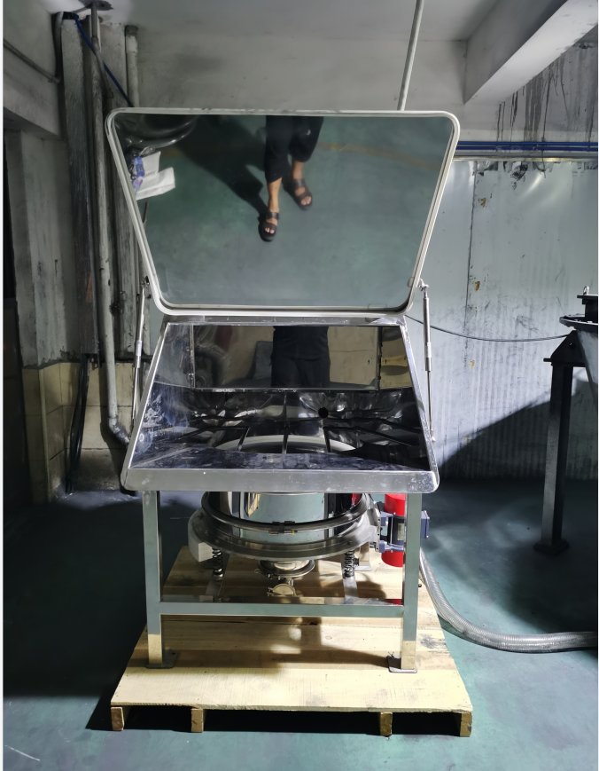 無(wú)塵投料站是利用負(fù)壓集塵的中轉(zhuǎn)裝置,適用于中轉(zhuǎn)物料在生產(chǎn)過(guò)程中的開袋和投料。能夠?qū)⑽锪舷葍?chǔ)存,后輸送,與集塵系統(tǒng)配合使用,有效避免粉塵飛揚(yáng)。將投料時(shí)產(chǎn)生的物料塵粉等和相關(guān)設(shè)備與人體進(jìn)行有效隔離,從而在風(fēng)機(jī)的負(fù)壓工況下將塵粉吸到過(guò)濾系統(tǒng)中,使氣體和物料分離,當(dāng)物料集聚多時(shí),因自重落入料倉(cāng)。