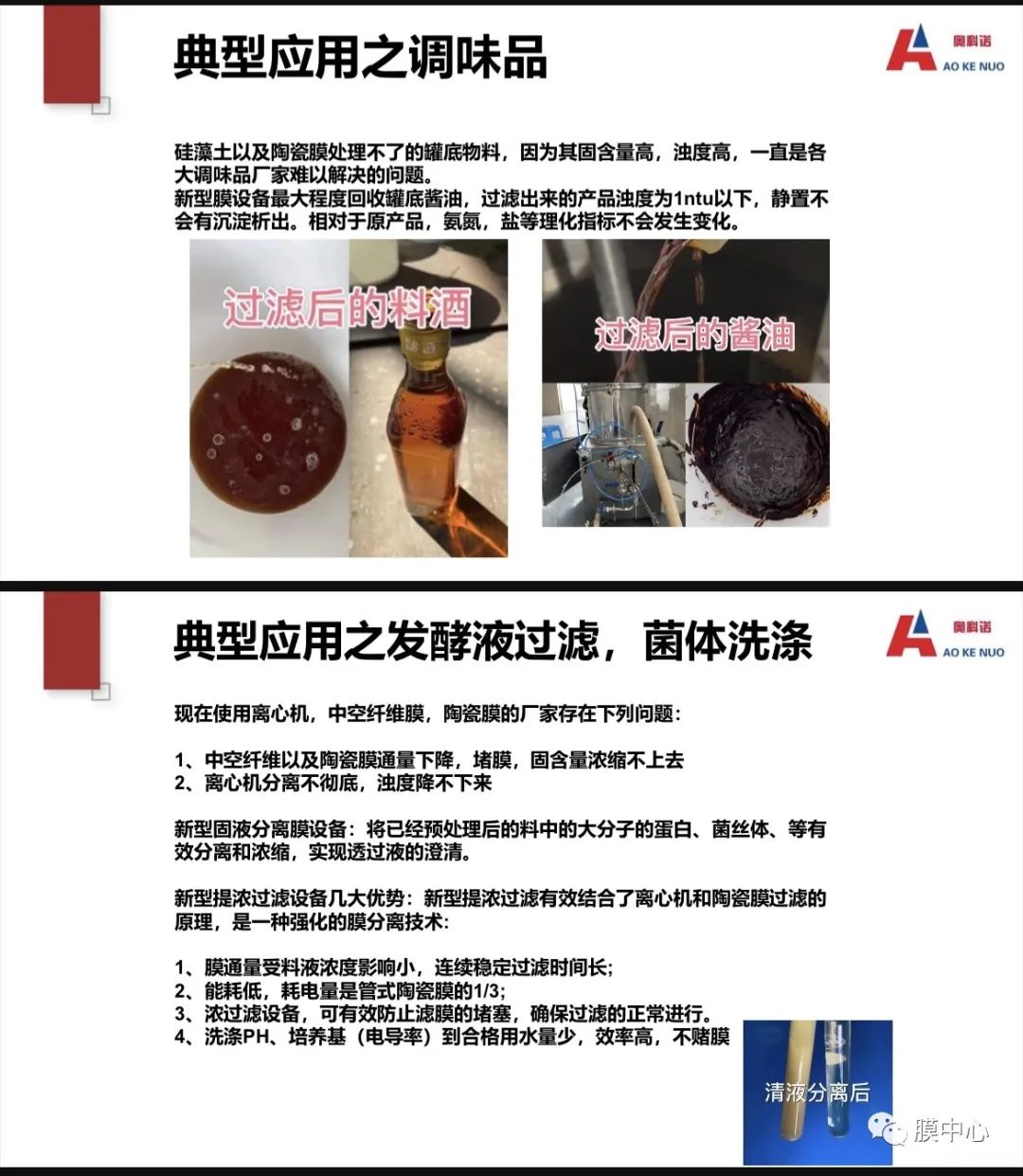 新型固液分離膜設(shè)備適合高粘度,高濃度物料固液分離,澄清過濾。解決傳統(tǒng)錯(cuò)流過濾,切向流過濾,離心機(jī)過濾解決不了的物料。 完美了解決了陶瓷膜堵膜,通量下降問題,離心機(jī)分離不徹底,效率低問題。